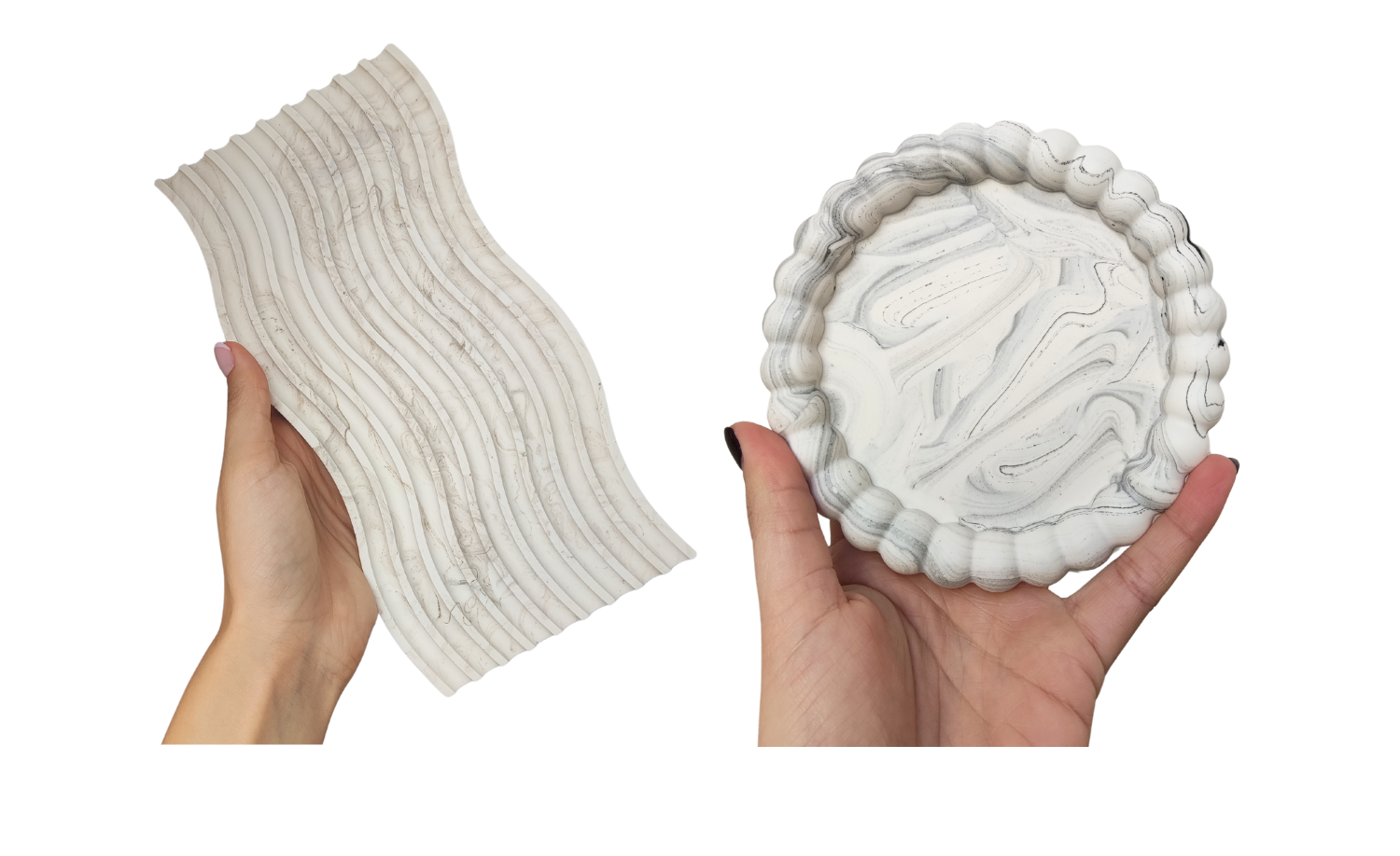 Consiste na junção desuniforme de 2 cores, de forma a recriar o efeito natural do mármore.