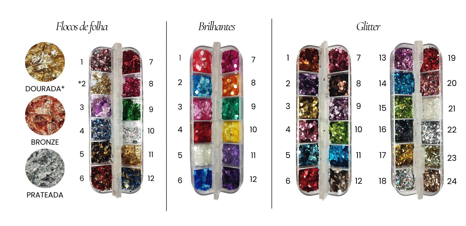 Podes adicionar brilho à tua peça através de flocos de folha, brilhantes ou glitter.